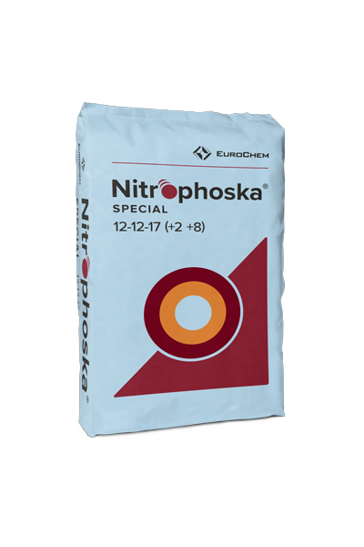 Πλήρες ειδικό NPK λίπασμα με Μαγνήσιο, Θείο και Ιχνοστοιχεία. Το όνομα, ο τύπος και η ποιότητα του Nitrophoska® special αποτελούν ορόσημο και σηματοδοτούν την εξέλιξη στα ειδικά λιπάσματα. Με άριστες πρώτες ύλες, σταθερή χημική σύσταση κάθε κόκκου, πληρότητα σε θρεπτικά στοιχεία, απουσία σκόνης και χλωρίου και με την μοναδική κοκκοποίηση και τεχνολογική υπεροχή της EuroChem Agro, το Nitrophoska® special 12-12-17 (+2MgO+8S+TE) χαρακτηρίζεται τόσο από τους γεωτεχνικούς όσο και από τους παραγωγούς ως το κορυφαίο ειδικό λίπασμα στον κόσμο. Η ειδική του σύνθεση, είναι απόλυτα προσαρμοσμένη στις θρεπτικές απαιτήσεις των κηπευτικών, της δενδροκομίας, της ανθοκομίας και κάθε ετήσιας ή πολυετούς καλλιέργειας. Ιδανικό για όλα τα είδη εδαφών και ειδικότερα για περιοχές με χαμηλή περιεκτικότητα σε Φώσφορο και Κάλιο.